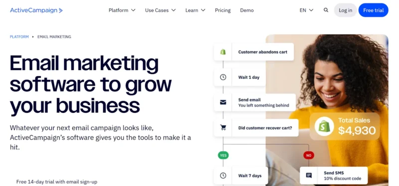 ActiveCampaign has become one of the most powerful and trusted platforms for advanced email marketing and automation. It’s particularly popular with businesses that want to move beyond simple newsletters and build highly personalized customer journeys. With its built-in CRM, predictive features, and industry-leading automation, ActiveCampaign is a top choice for marketers who prioritize depth and precision.