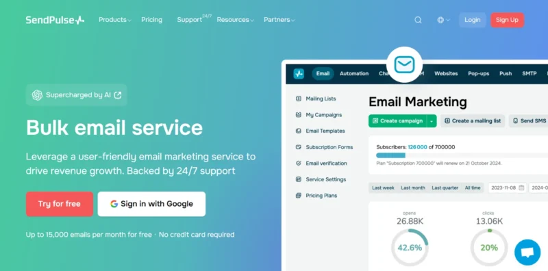 For small businesses, startups, and growing brands, affordability and ease of use are usually the top priorities. This is where SendPulse truly stands out, offering a generous free plan, intuitive tools, and the added advantage of multi-channel marketing—including SMS and chatbots. It allows new marketers to get started quickly, while also giving them the flexibility to scale without switching platforms as their needs grow.