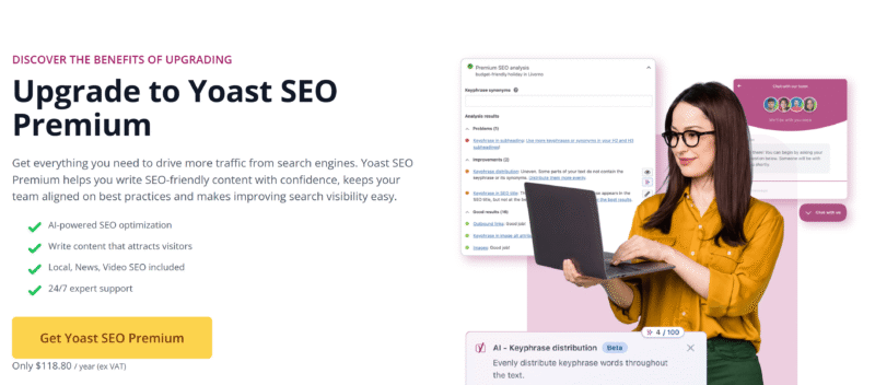 - Yoast SEO: Prioritize content clarity, readability, and writing discipline.